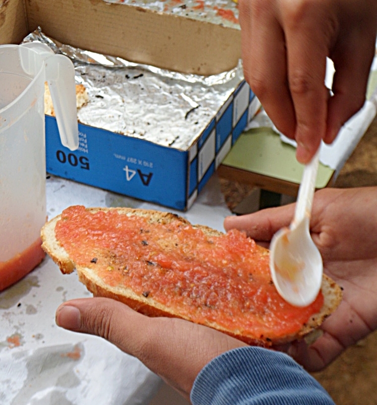 Todavía no eran las 10 de la mañana y ya se apreciaba el agradable olor a pan tostado en leña. Litros y litros de tomate triturado esperaban la llegada de alumnos y profesores al saludable desayuno que hoy era la actividad estrella de la Semana de la Salud.